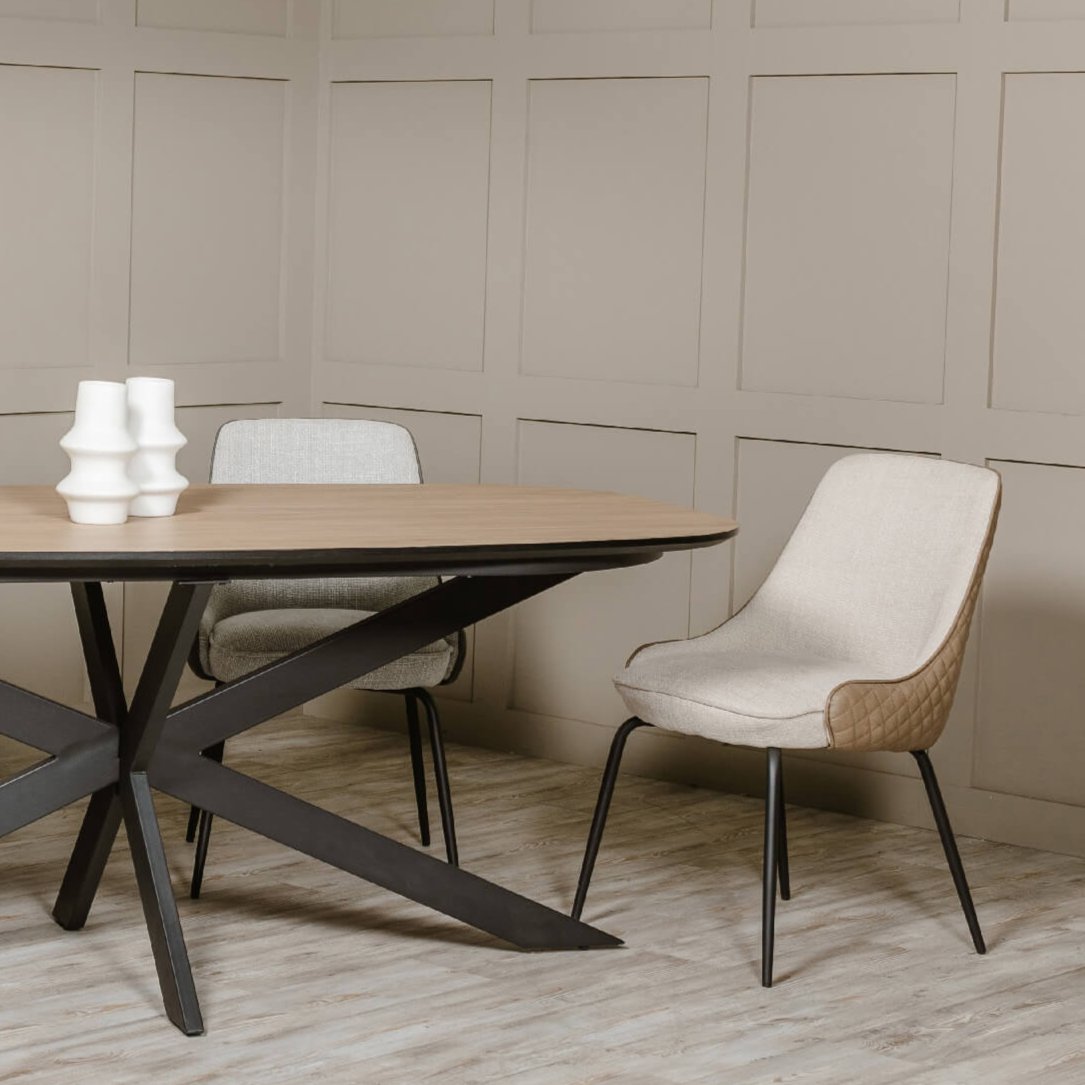 It features black powder-coated metal legs, offering sturdy support with a sleek aesthetic.