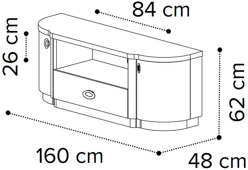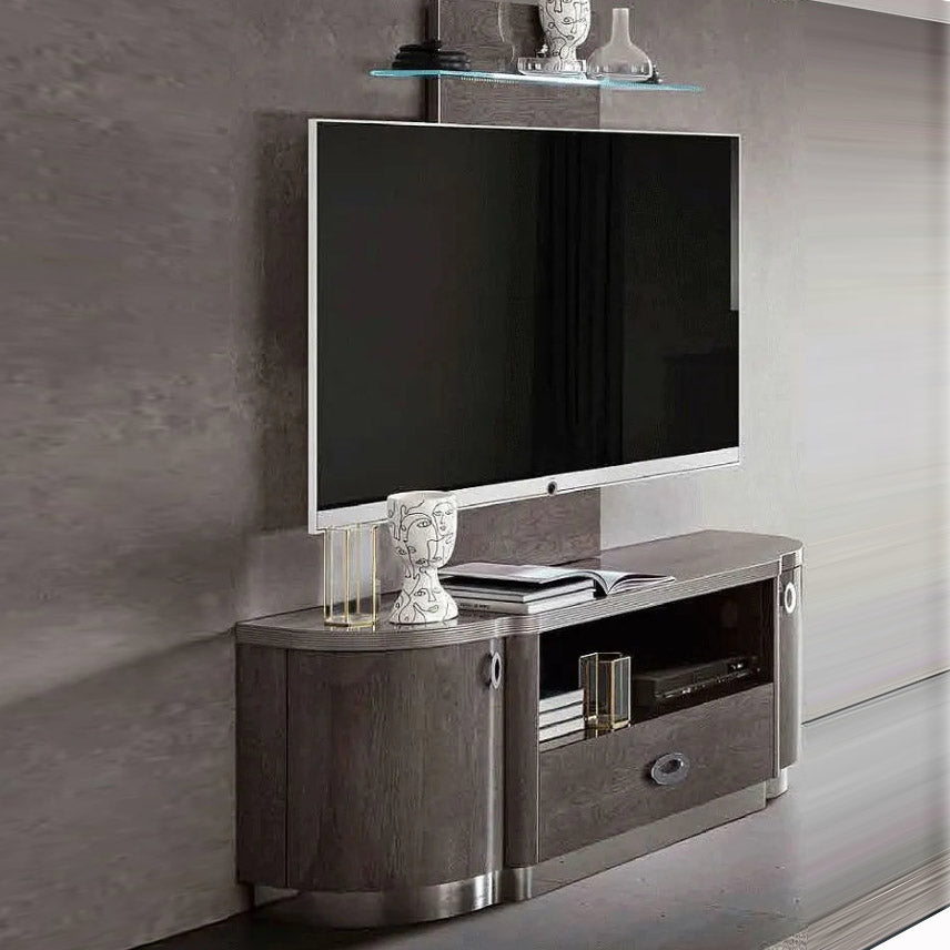 Elevate your home with the Ali Silver Birch TV Cabinet. Its luxurious curved design adds refinement and functionality to any space. Featuring an oval chrome handle, ribbed edge, and harmonious curves, this buffet is expertly crafted with attention to detail.
