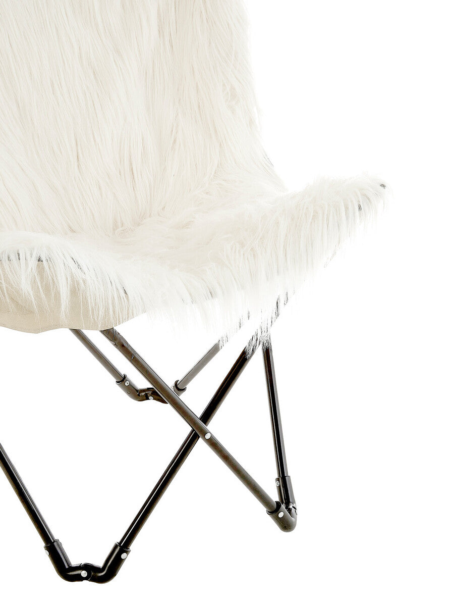 Artic White Faux Fur Butterfly Chair