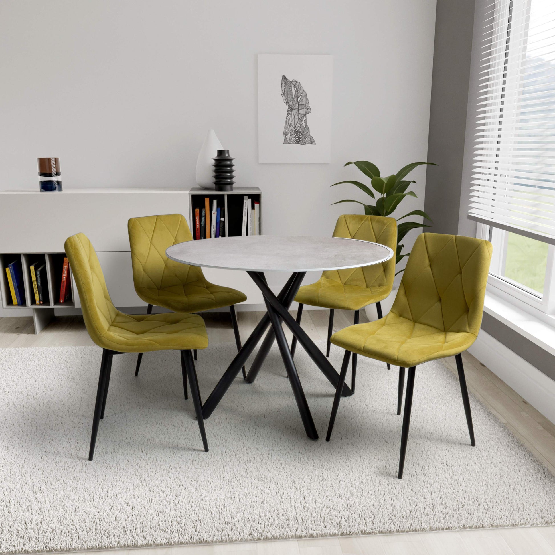 Avensis Round Grey Marble 1m Dining Table with 4 Velvet Dining Chairs - Various Colours