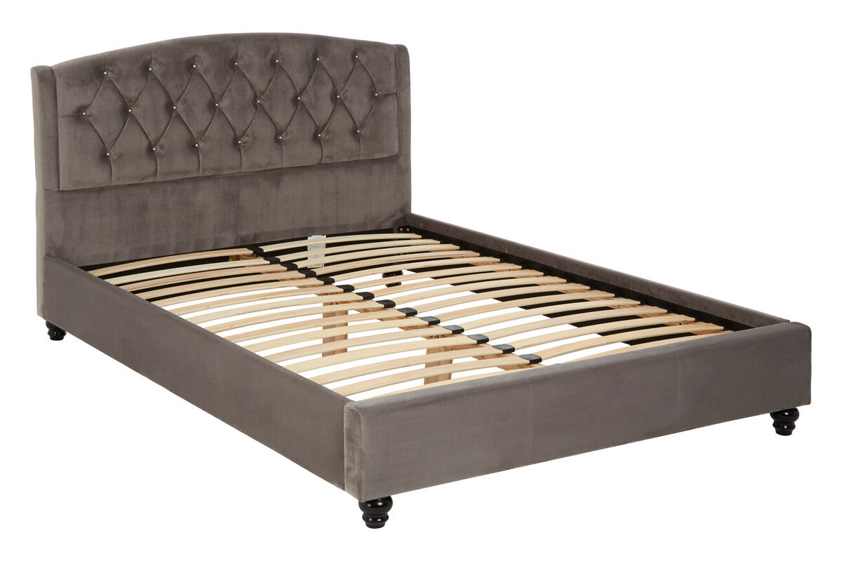 Add timeless elegance to your bedroom with the Beatrice Double Bed, featuring a softly arched headboard upholstered in plush brushed velvet. The elegant diamond tufting and contrasting stud detailing create a refined focal point, blending traditional charm with a modern edge.