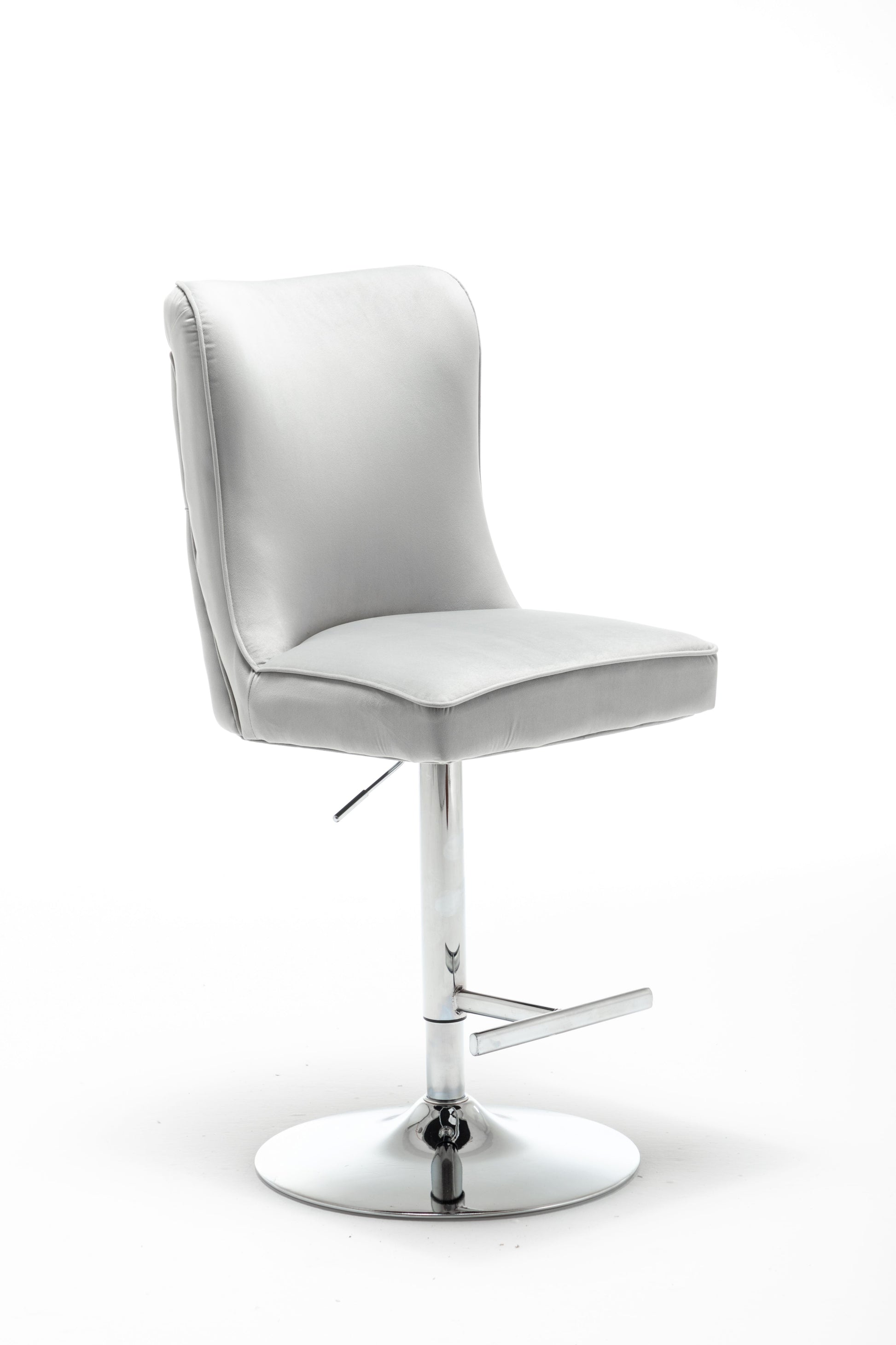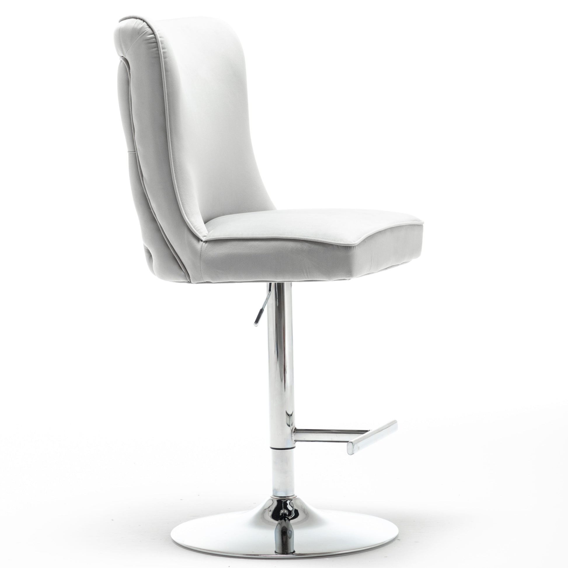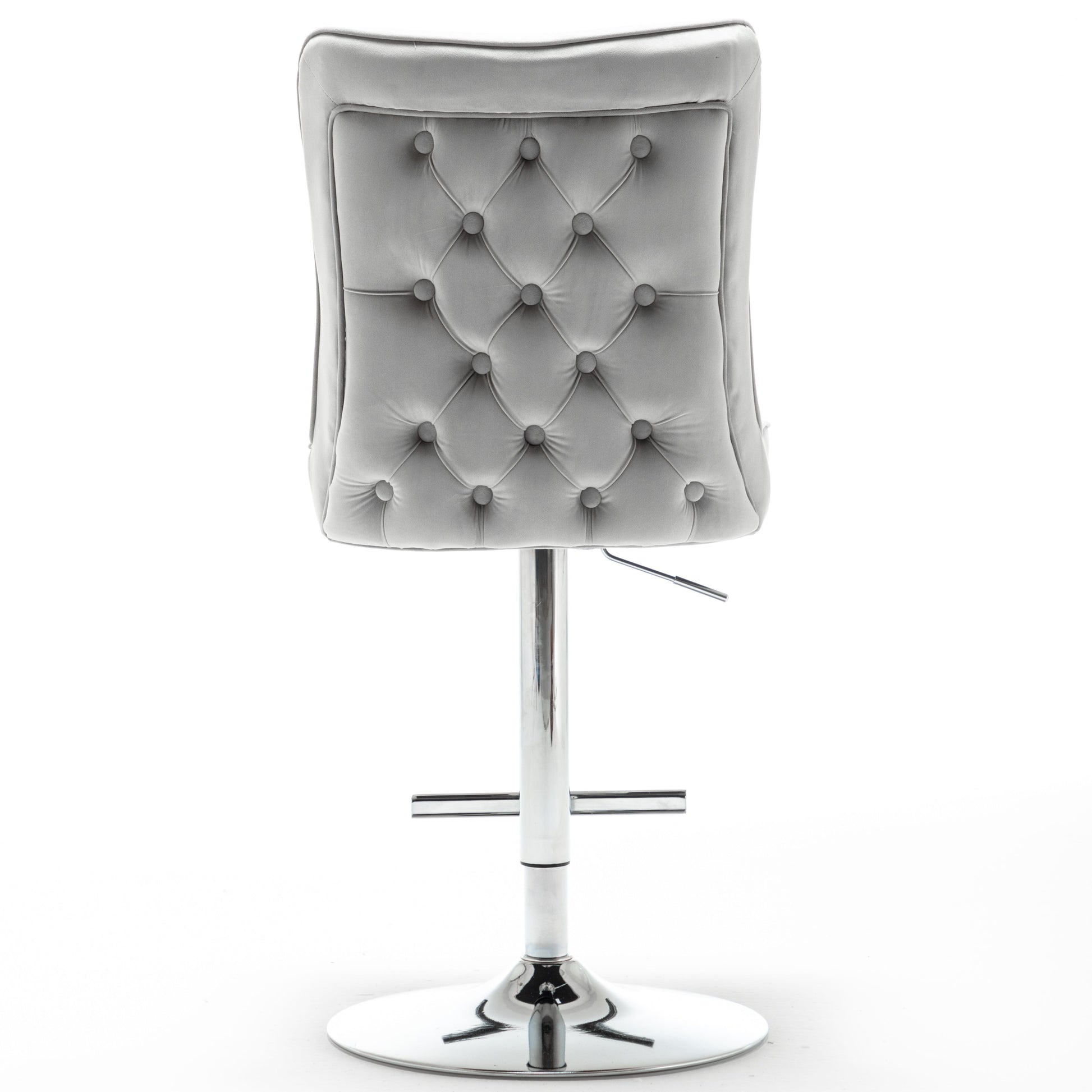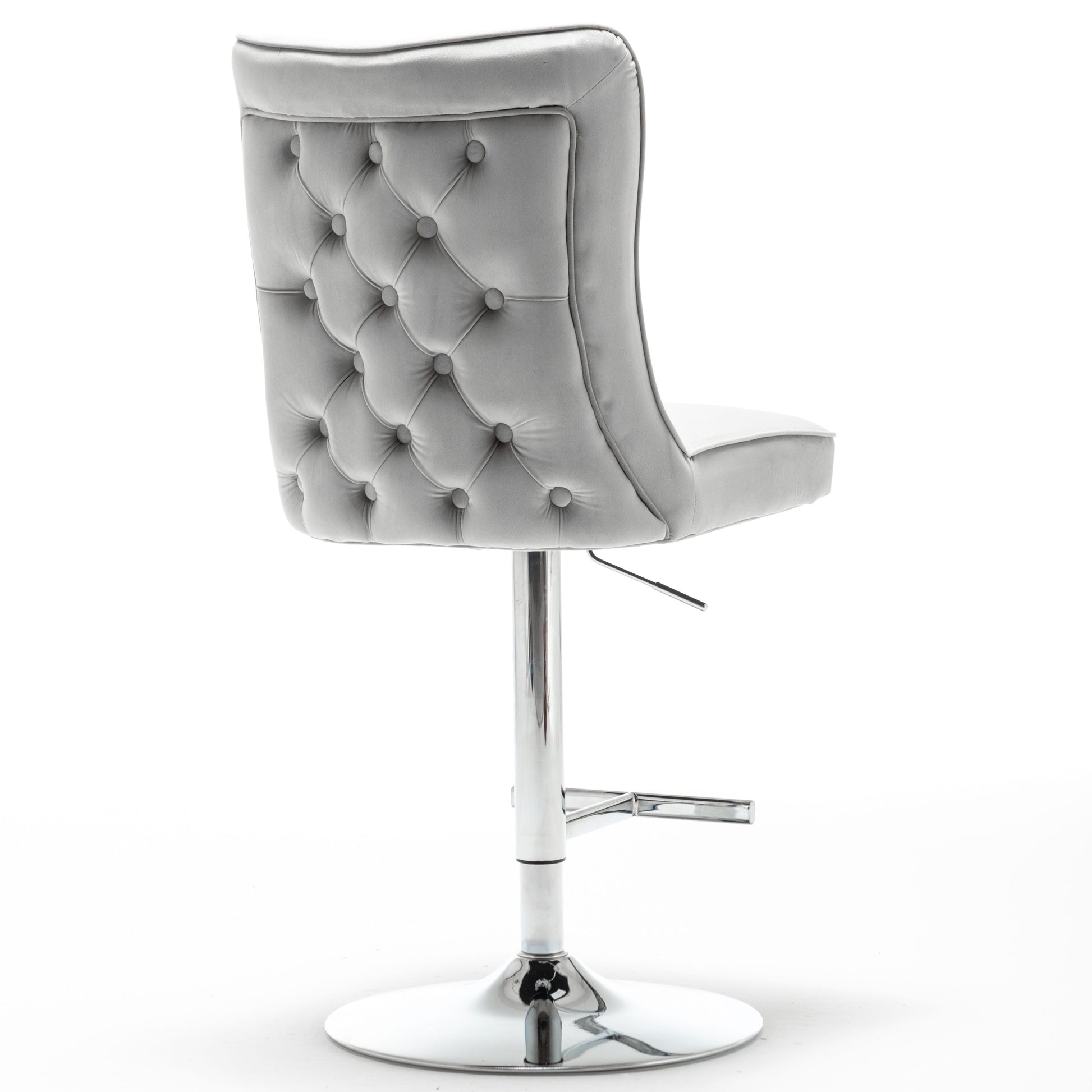 The Breanna bar stool benefits from luxurious soft matte velvet upholstery, and the backrest is decorated with button back detailing, the adjustable stand is made of stainless steel, which adds a beautiful chrome finish look.