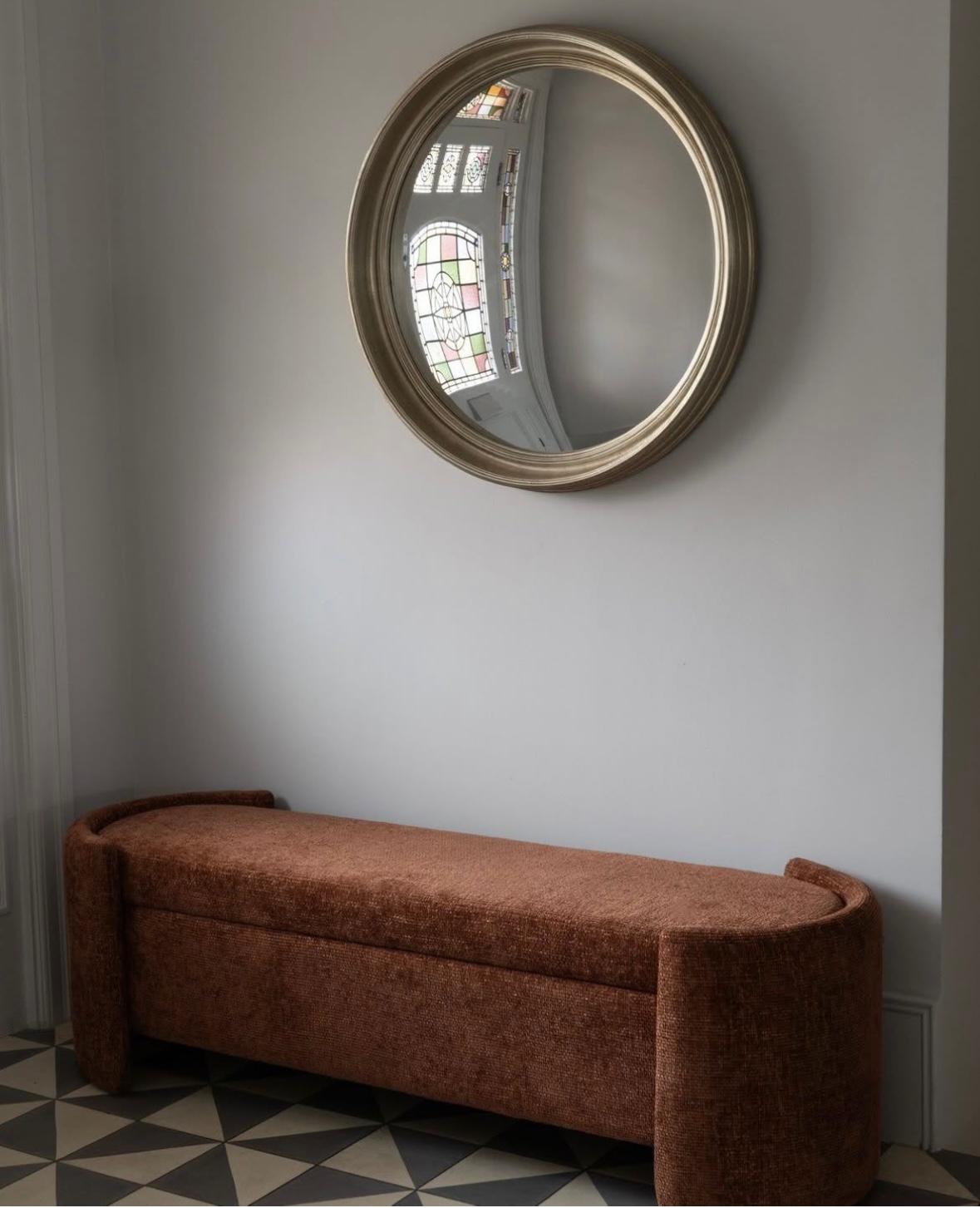 Its versatile silhouette makes it ideal for use at the end of a bed, in an entryway, or as an accent in your living space. The warm terracotta tone and soft upholstery add a cosy yet refined touch to any interior.
