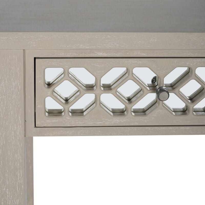 The distressed wash on the solid wooden frame adds a rustic, cherished character, ensuring its adaptability to diverse interior styles. Drawer Depth: 10cm.