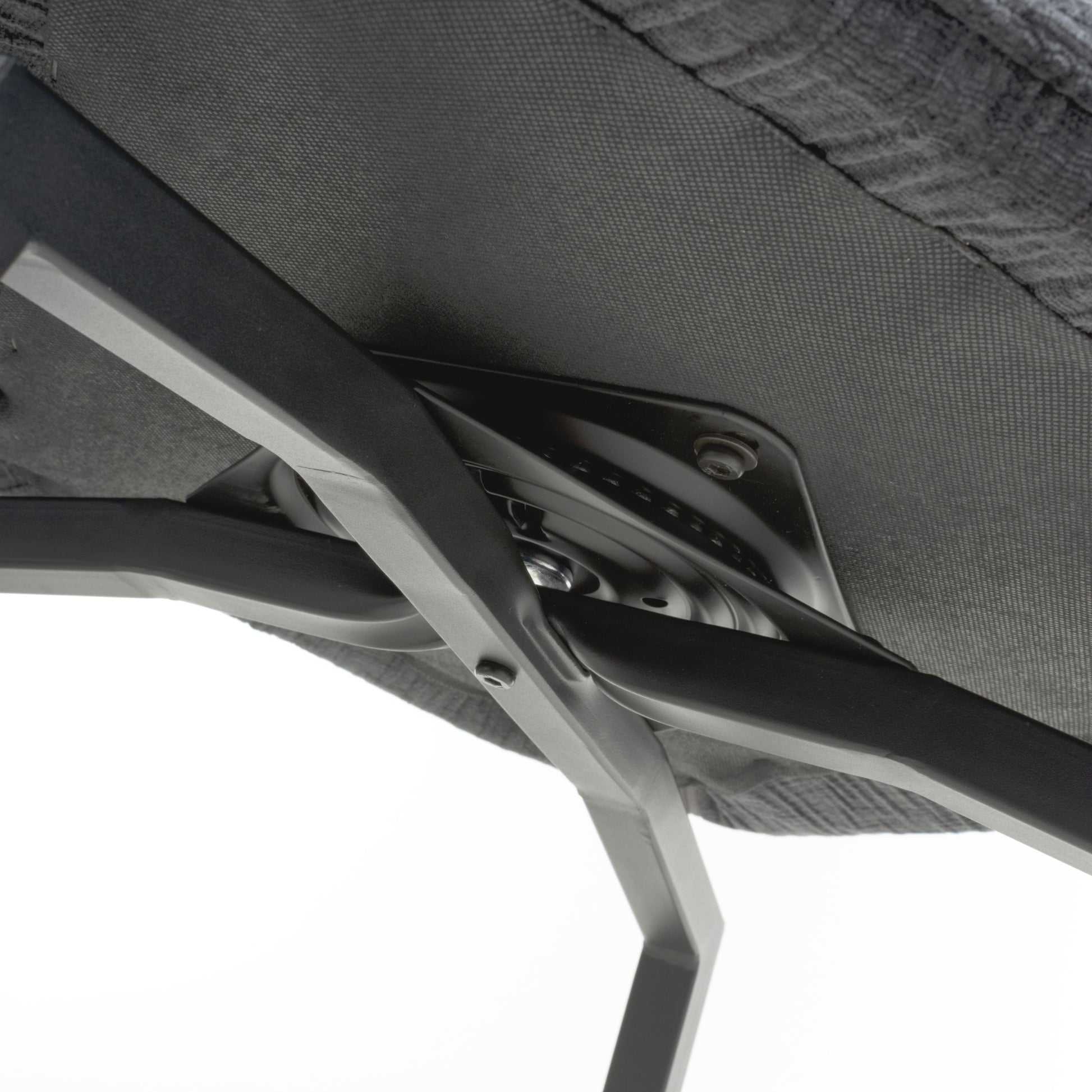 The sleek black metal cross frame base and adjustable feet ensure stability on any surface.