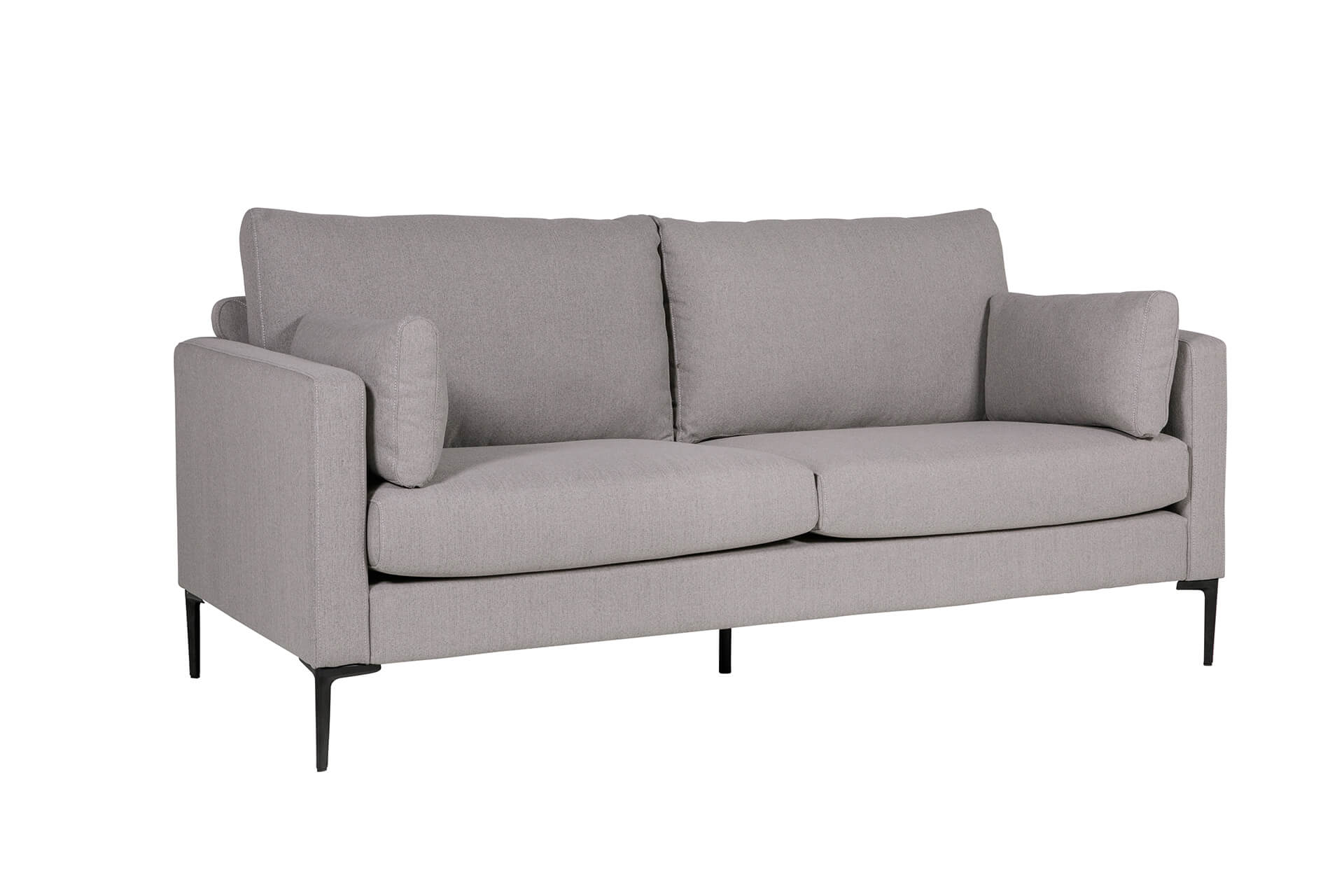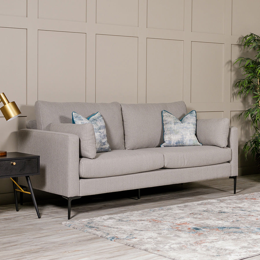 The Ella 3 Seater Sofa - stylish and comfortable addition to any living room, exuding modern elegance with its sleek black powder-coated metal legs. Upholstered in a durable woven poly fabric, this sofa combines sophistication and resilience. With a foam and spring seat set on a sturdy plywood frame, the Ella Sofa ensures lasting comfort and support, making it the ideal choice for lounging and relaxation. Available in Navy Plush Velvet or Grey Woven fabric.