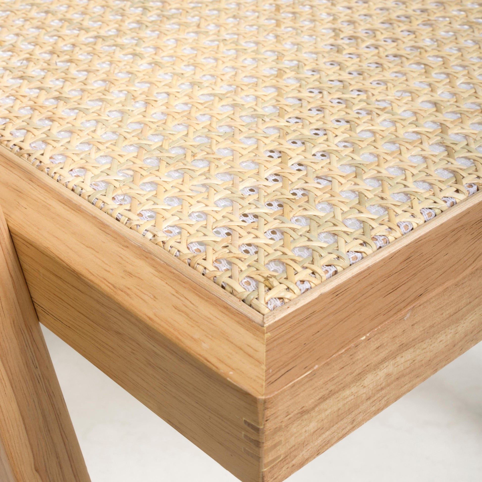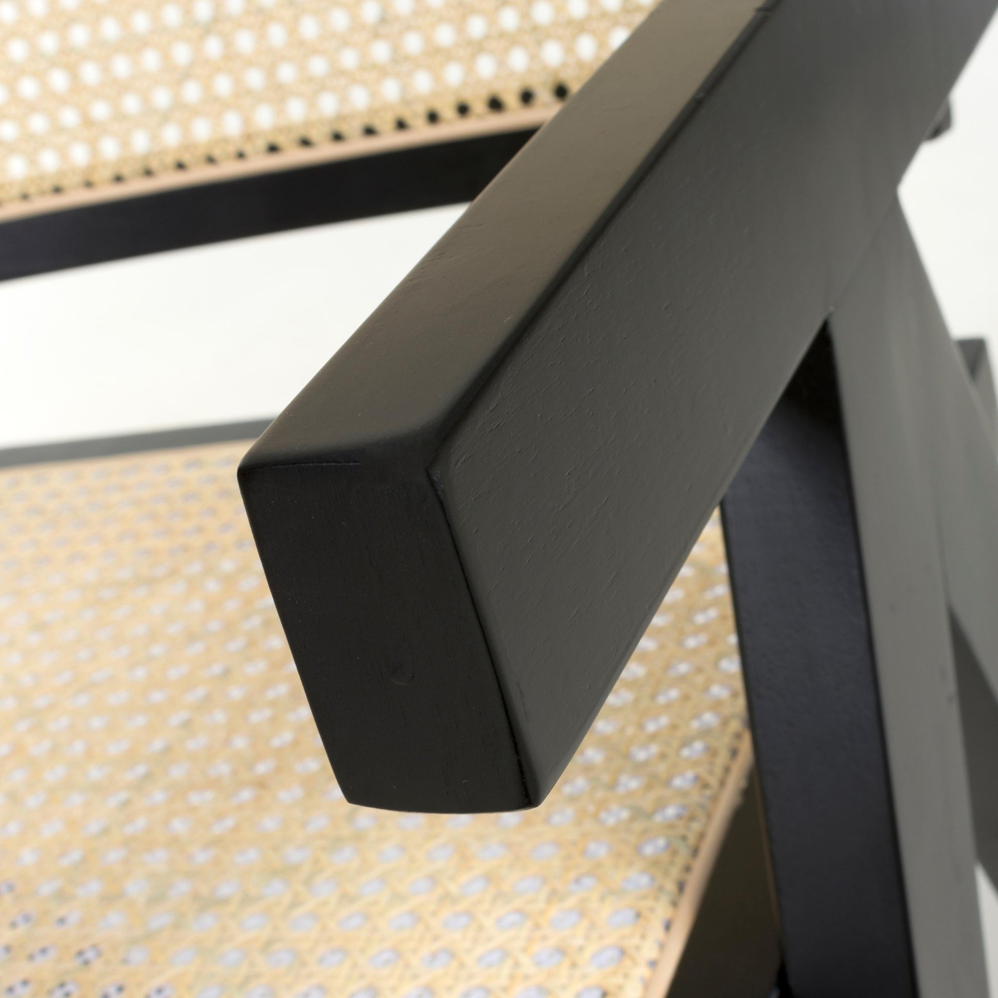 The floating rattan seat and sturdy armrests are supported by a robust angular leg frame, ensuring lasting comfort.