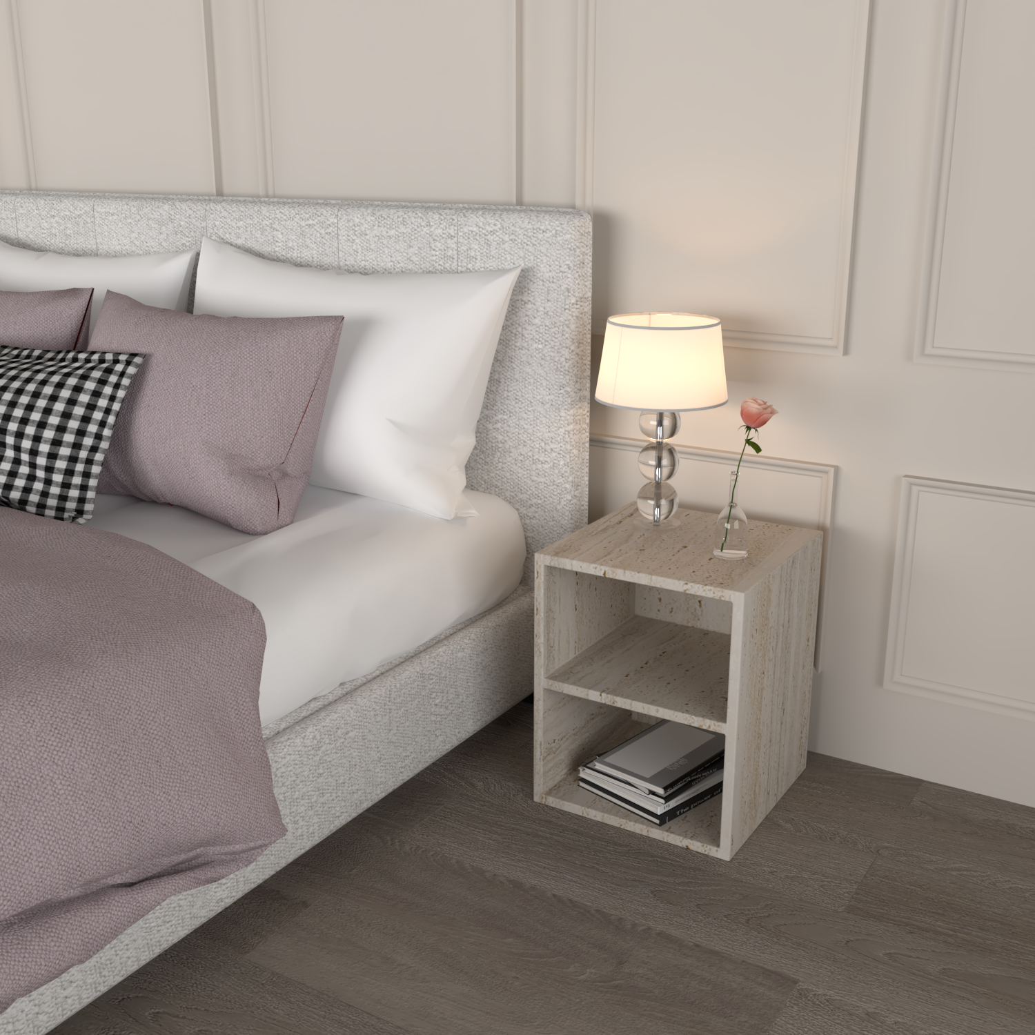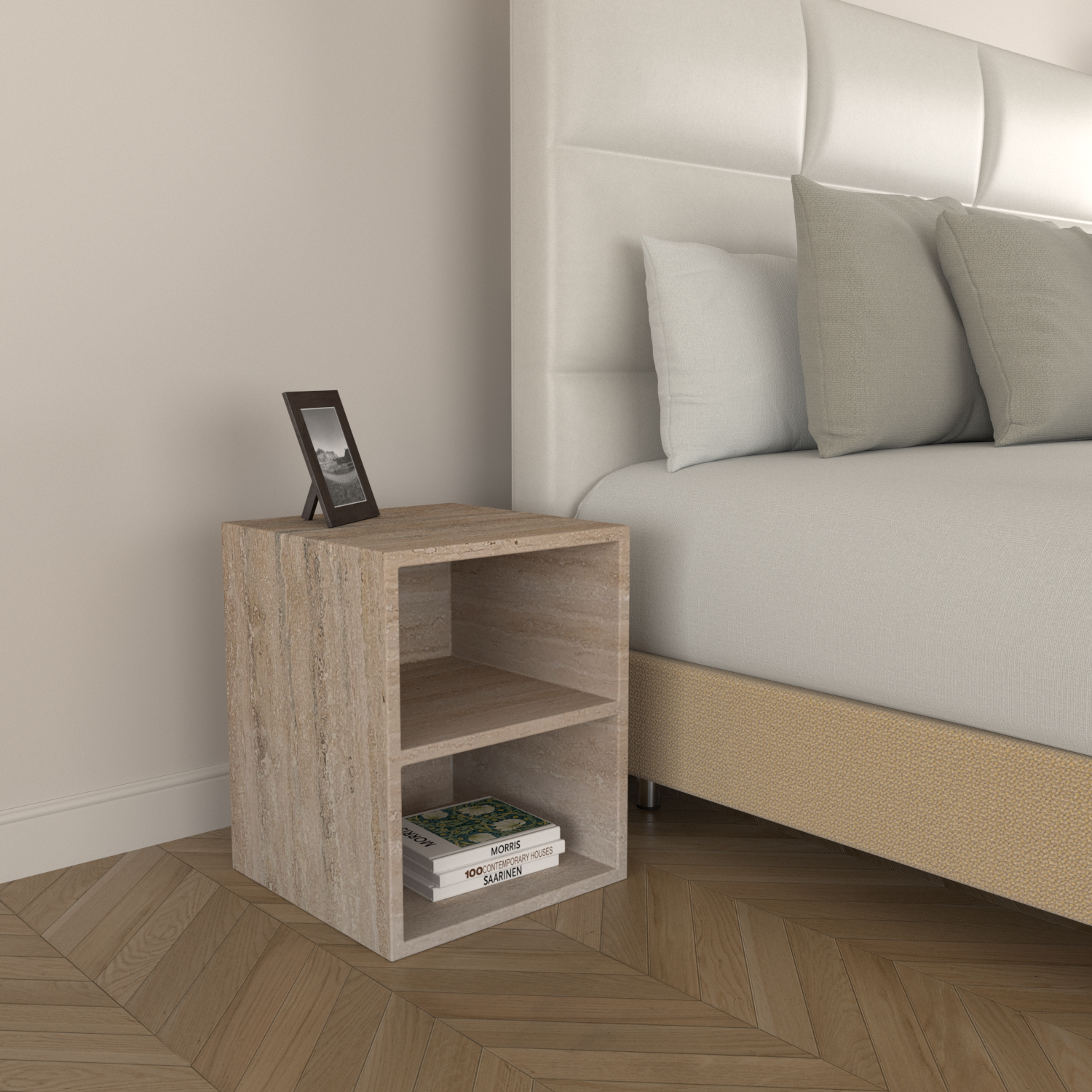 The Lena Side Table with Shelf is a handcrafted piece of stone furniture, designed for timeless beauty and everyday function. At 400 x 400 x 500mm, it's ideal as a bedside, living room side table, or hallway accent.