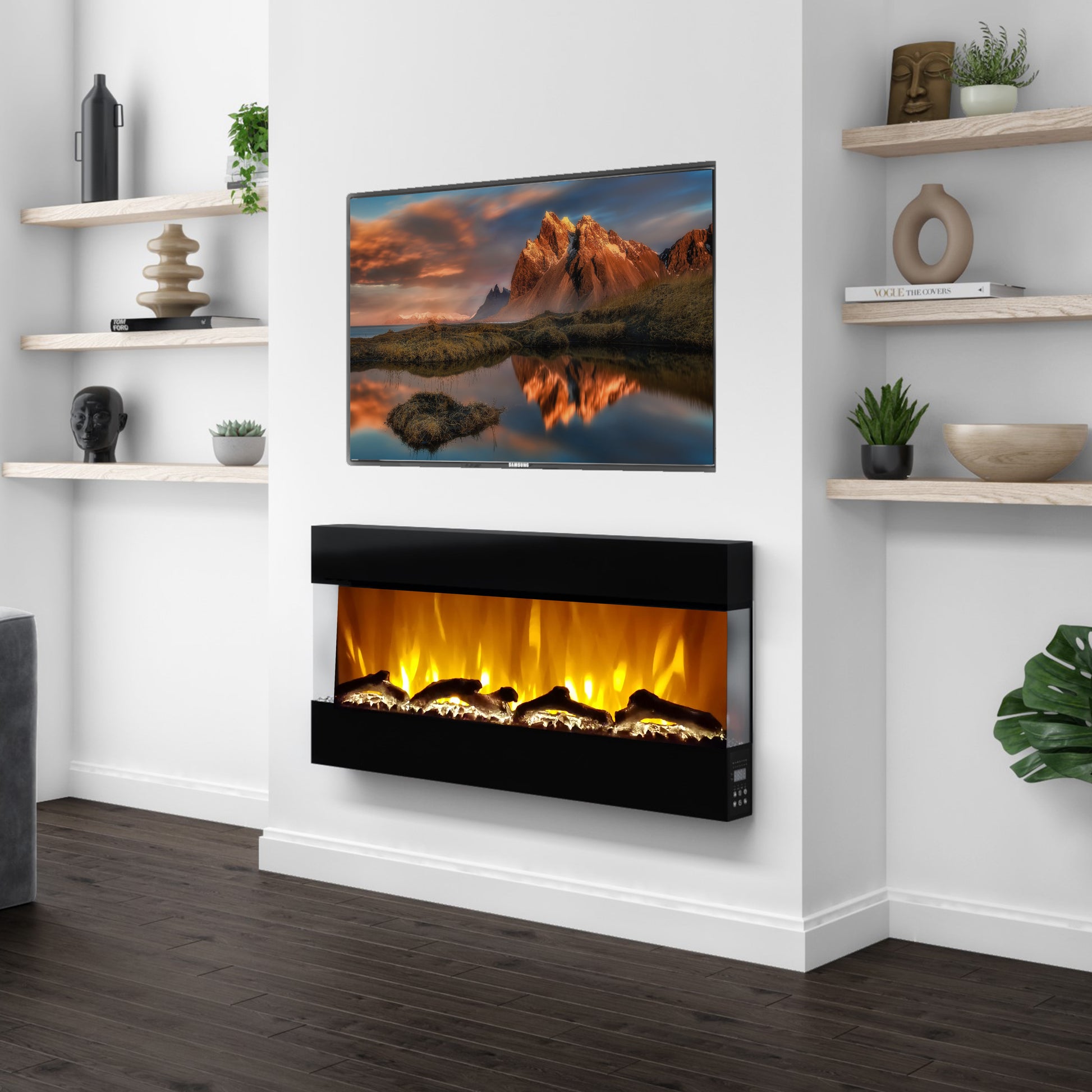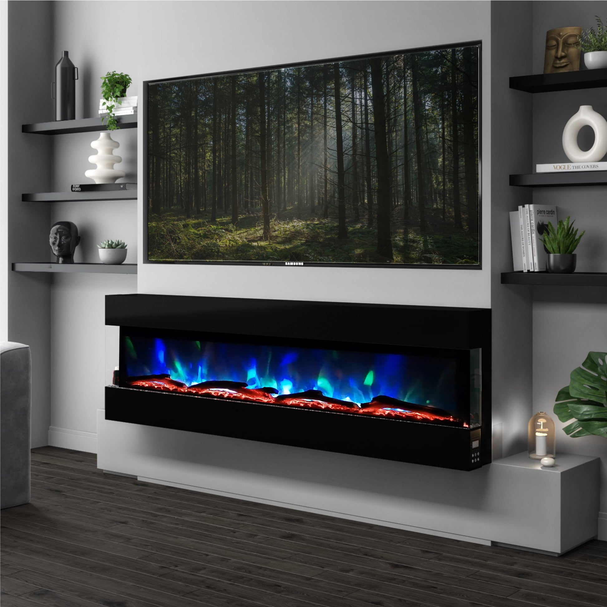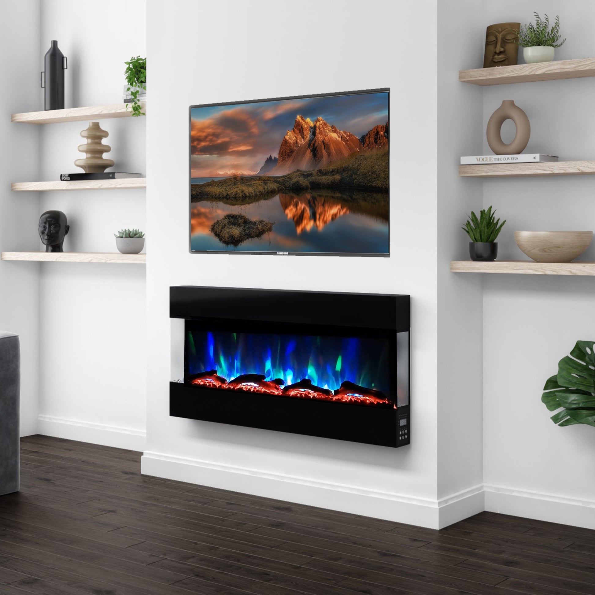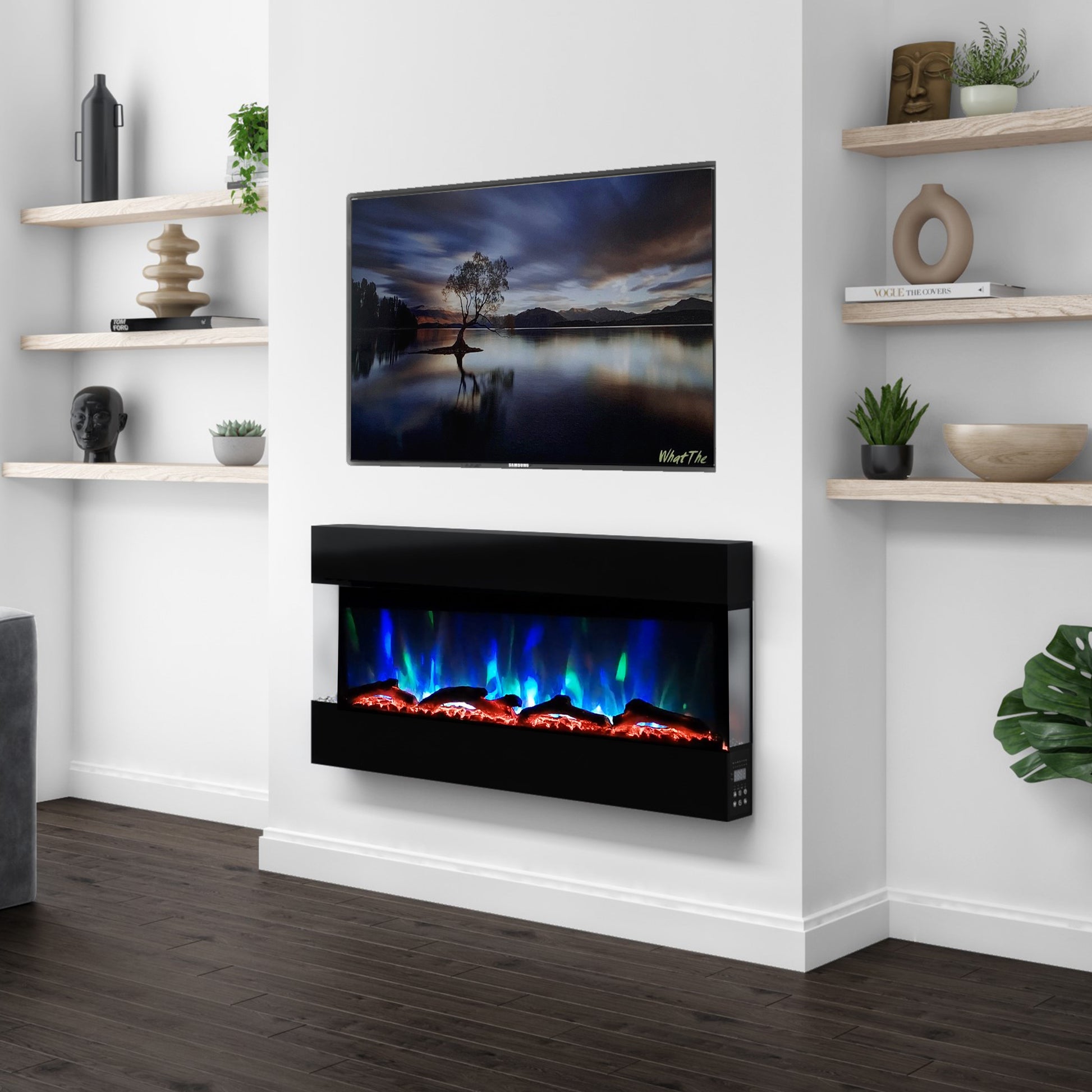 Malachi Modern Electric Fire. Available in various colours and sizes. Beautiful recessed/insert wall mounted electric fire. Comes with crystal and log accessories that are manually replaceable. Fire colour and log colour can be changed with the remote or manually using the buttons on the fire itself.