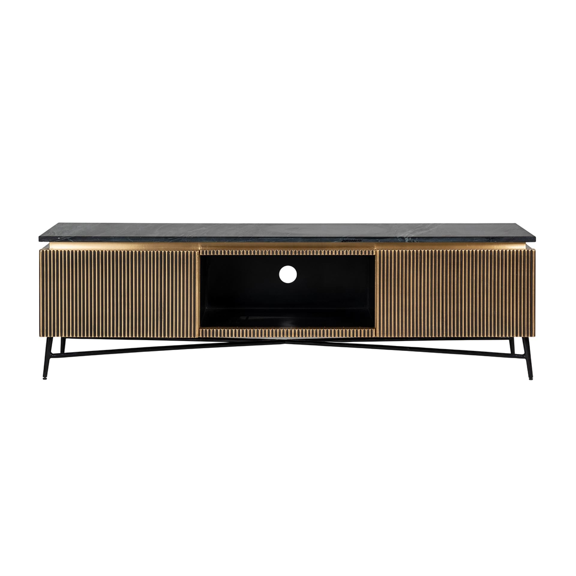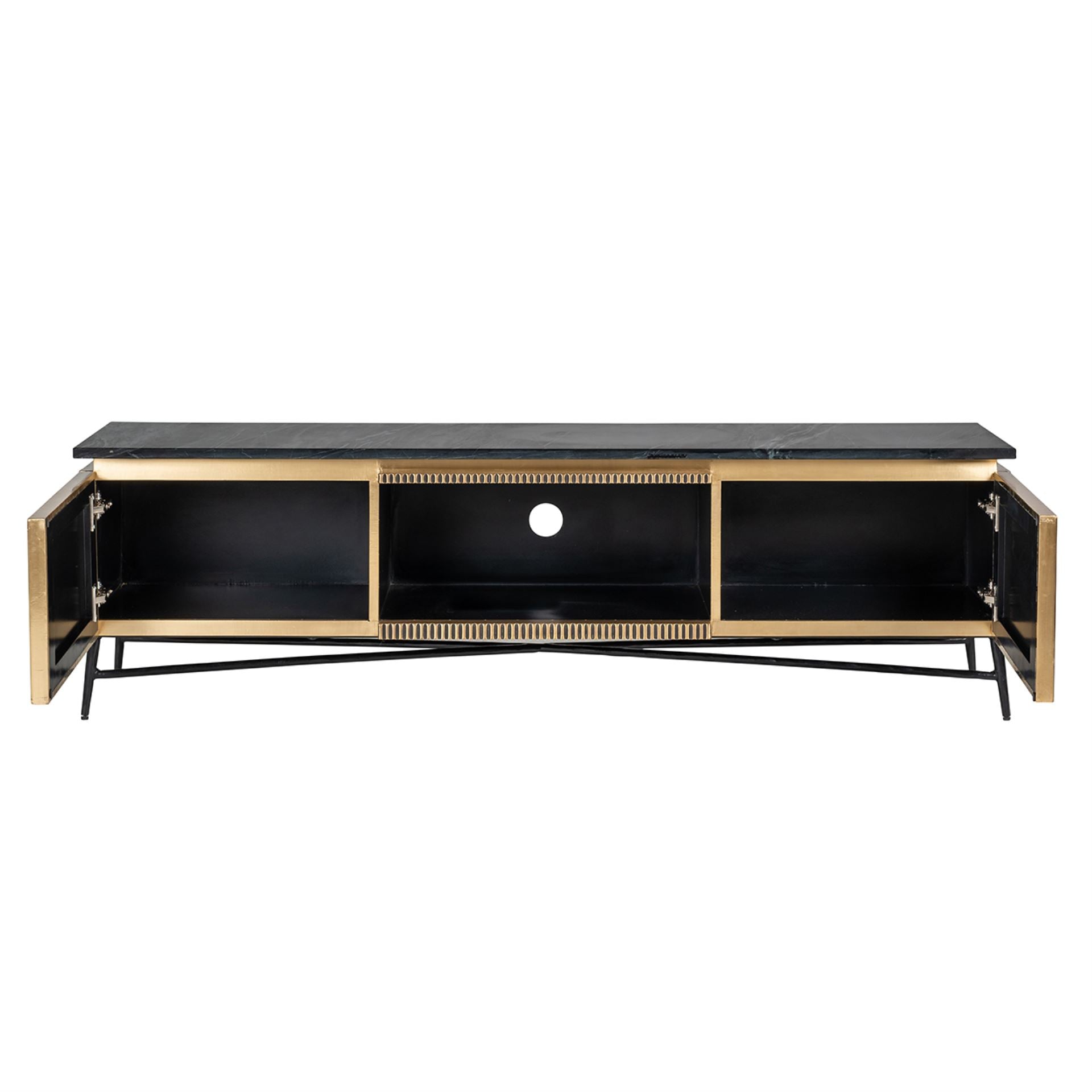 Modern Inessa Marble Iron TV Unit Contemporary Design. This delightful TV unit simply exudes modern glamour. The iron base contrasts against the dark marble top in stunning fashion creating a TV cabinet of the utmost sophistication.
