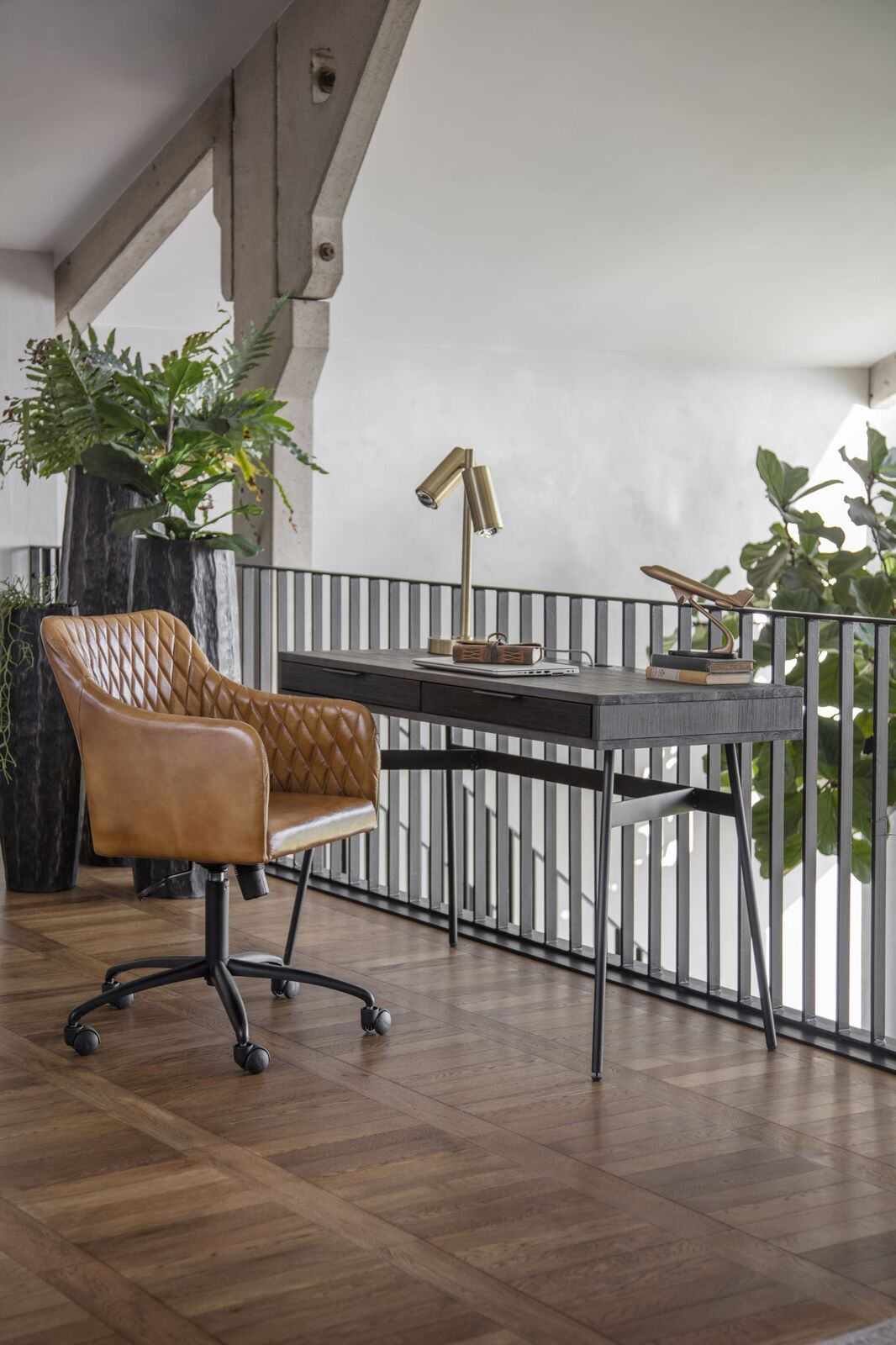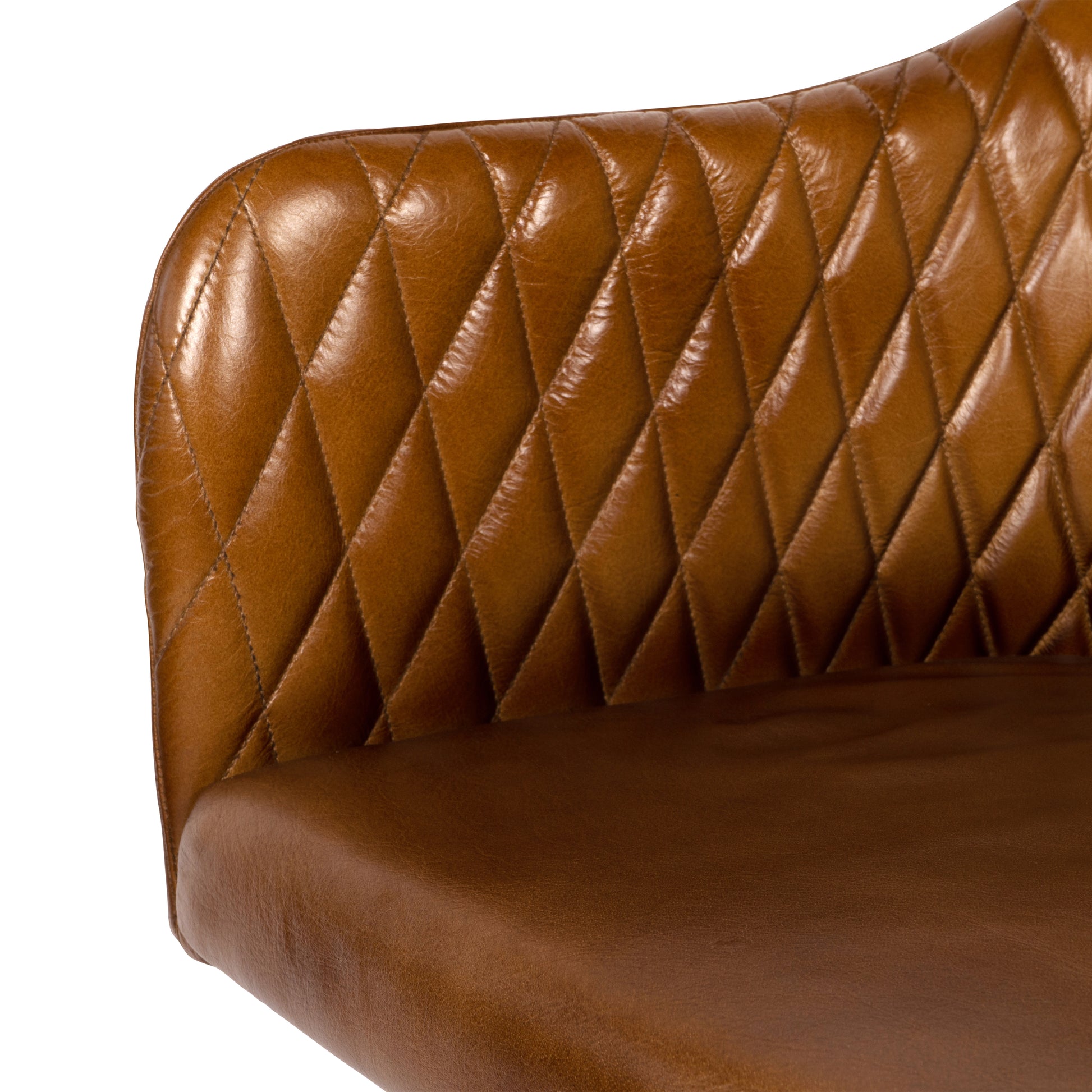 Upgrade your space with this classic Vintage Leather Accent Chair. Featuring premium leather upholstery in diamond stitching on internal back and sides with plain back and sides and a durable wooden frame, this chair offers timeless style and comfort. The Monty office chair is mounted on castors with gas strut adjustable height between 50cm and 63cm. Seat width 45cm x depth 44cm.