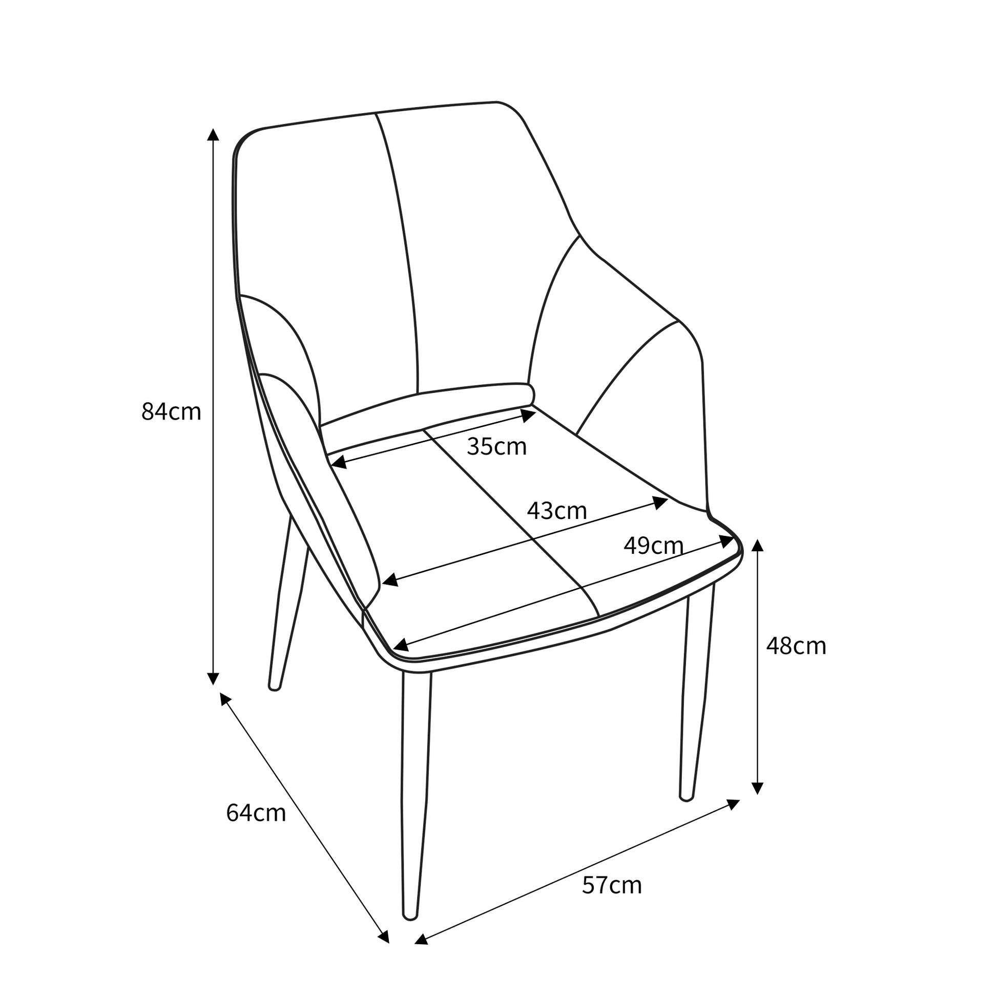 The chic design features a distinctive gap between the backrest and seat, complemented by sleek vertical stitching down the centre. Black metal legs provide a sturdy and stylish foundation.