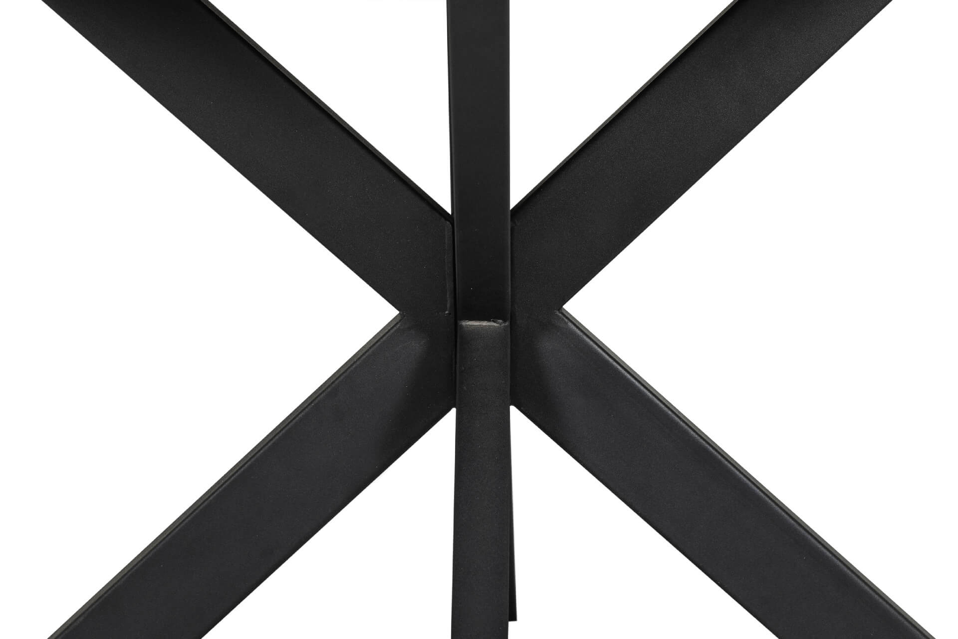 The Natalie Round Dining Table 1000, available in Natural or Smoked Oak, offers a unique and modern touch to dining areas. Crafted from engineered wood, this table showcases a distinctive geometric pattern in a smoked oak finish. Its circular shape promotes a cozy dining atmosphere and is enhanced by durable, powder-coated black metal legs for a bold contrast and stable foundation.