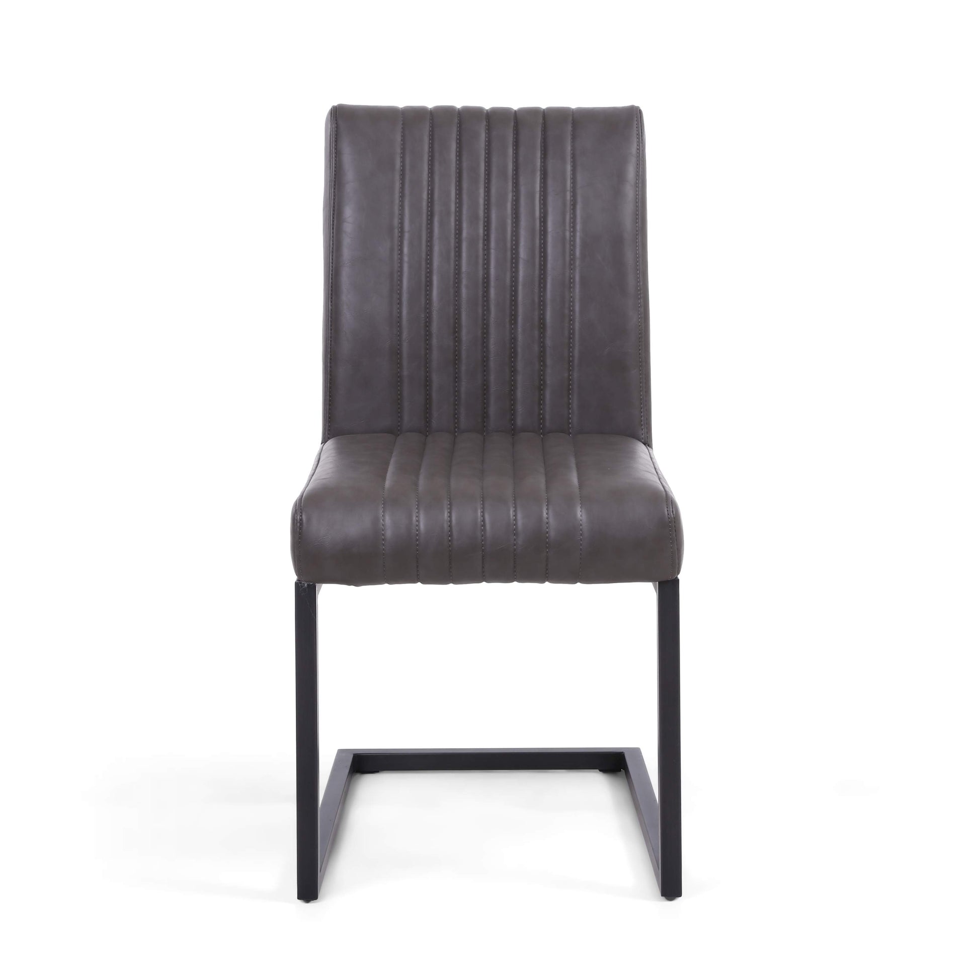 Pair of Arthur Dining Chairs – Grey Leather Effect & Cantilever Legs