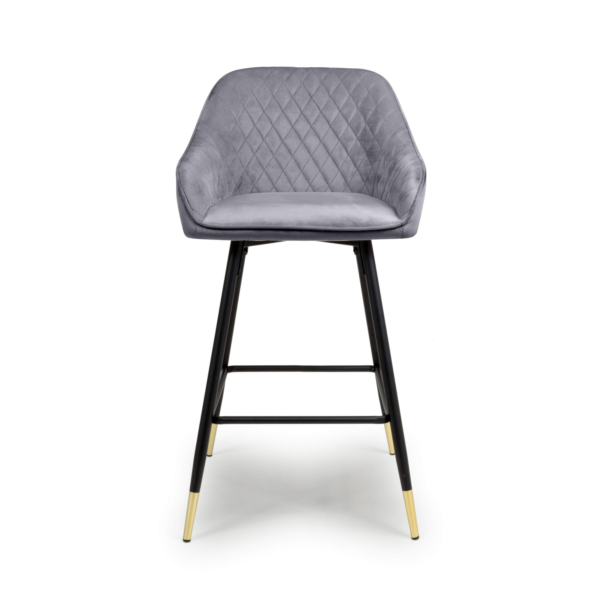 The Gabby Bar Stools are where modern luxury meets everyday functionality. Sold as a pair, each stool features a sculpted brushed velvet seat with softly padded diamond-pleated armrests and a curved back for added comfort. The clean rear profile and minimalist form create a sleek silhouette that complements contemporary, glam, or mid-century interiors.