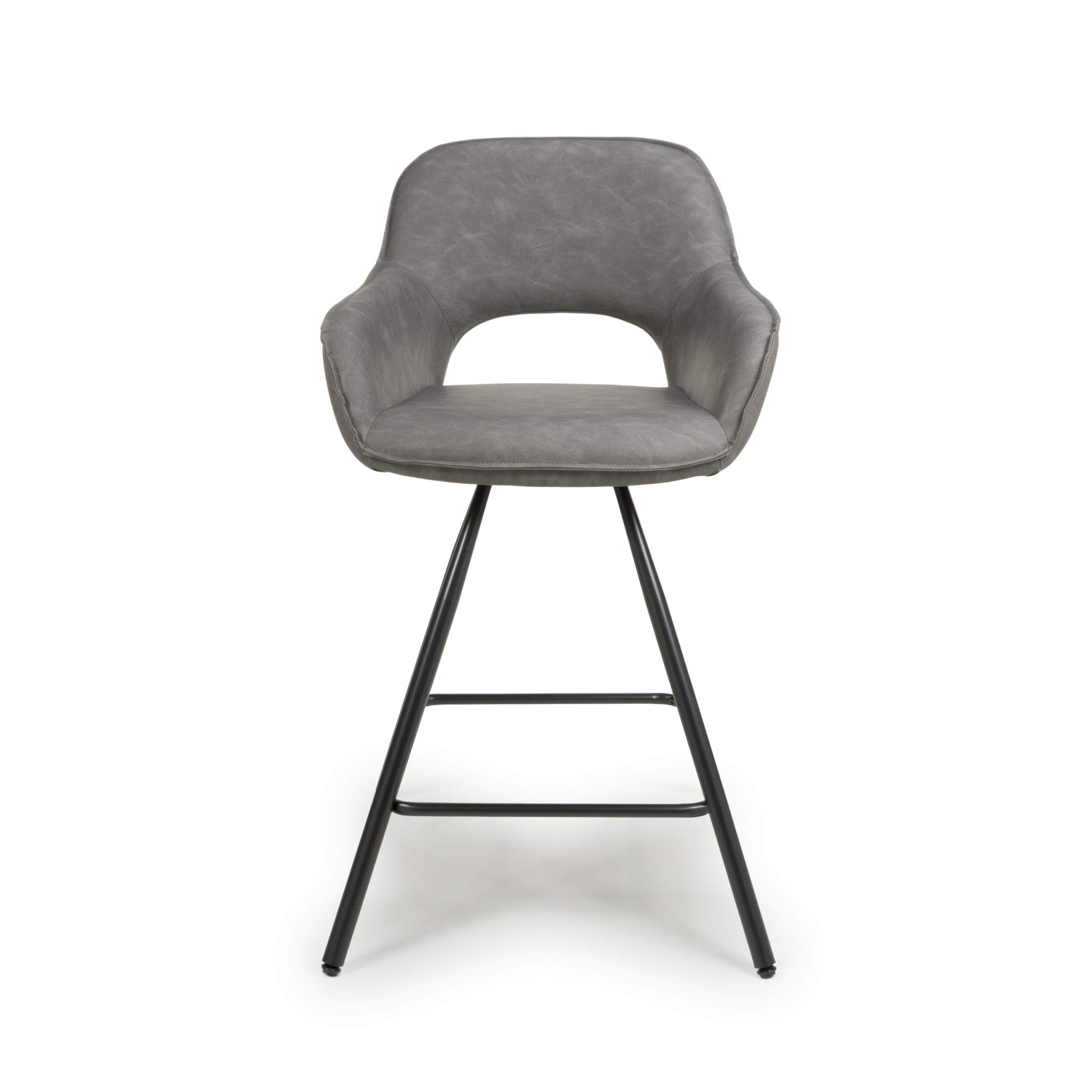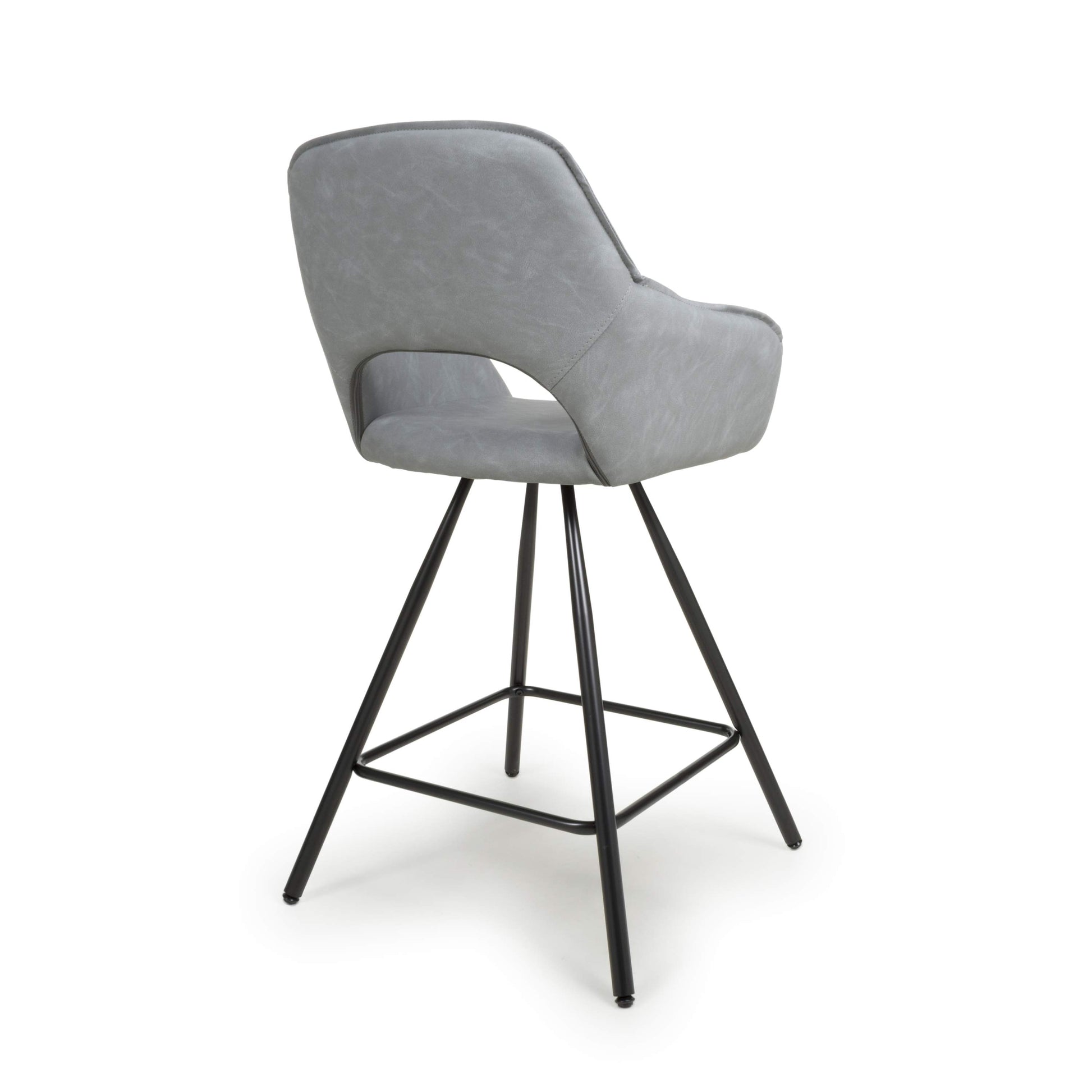 Bring comfort and contemporary elegance to your kitchen or bar area with the Toria Bar Stools, available as a pair in your choice of mink, charcoal, or light grey leather-effect fabric. Featuring a generously padded bucket seat with a gently sloping backrest, elegant stitching detail, and a distinctive semi-circle cutout, these stools are designed for both style and support.