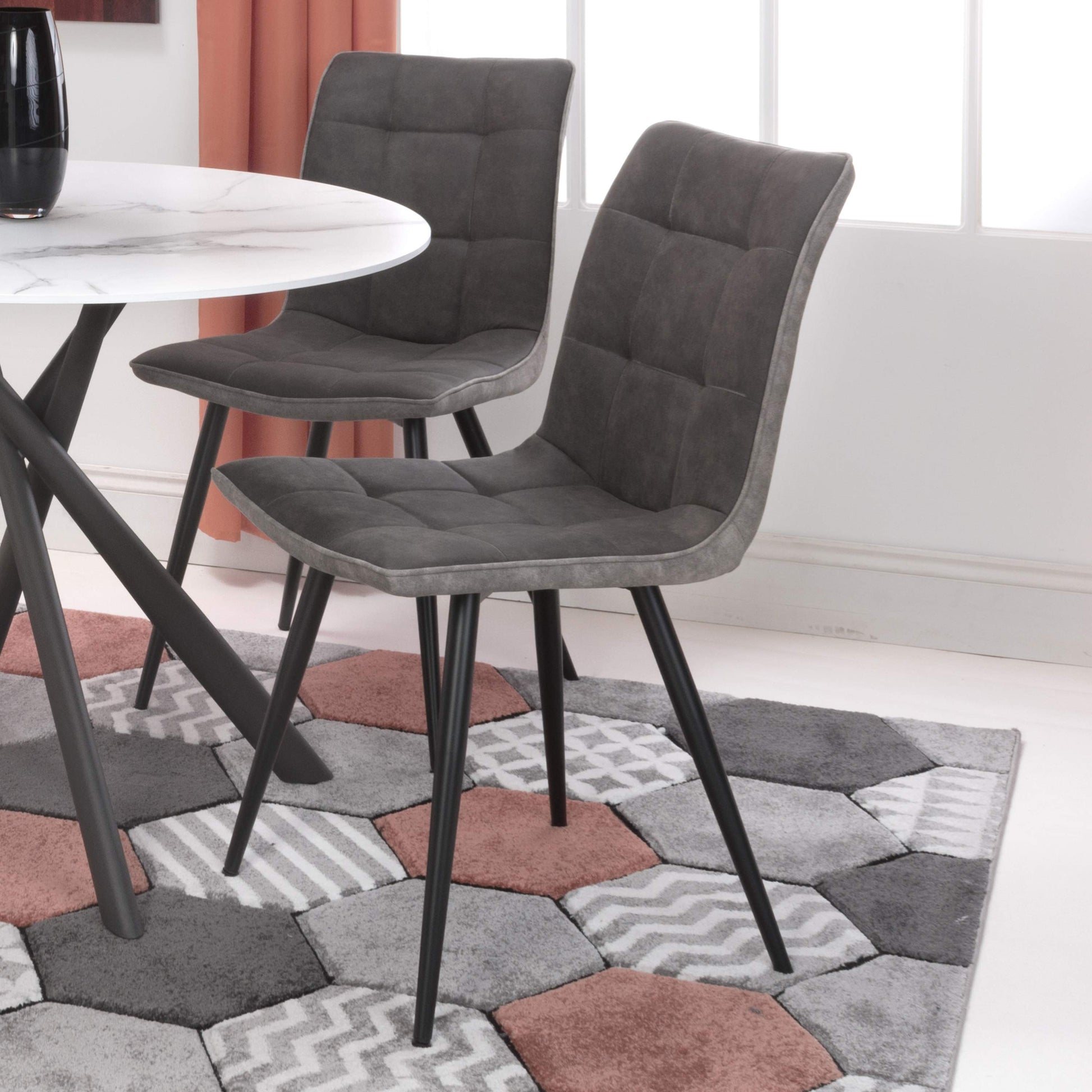 Elevate your dining space with the Rod Dining Chair, a modern piece designed for both style and comfort. Its invitingly curved silhouette features a chic twin-tone suede effect, available in two striking combinations: a dark grey padded seat with a smooth light grey back, or a light grey padded seat with a smooth dark grey back.