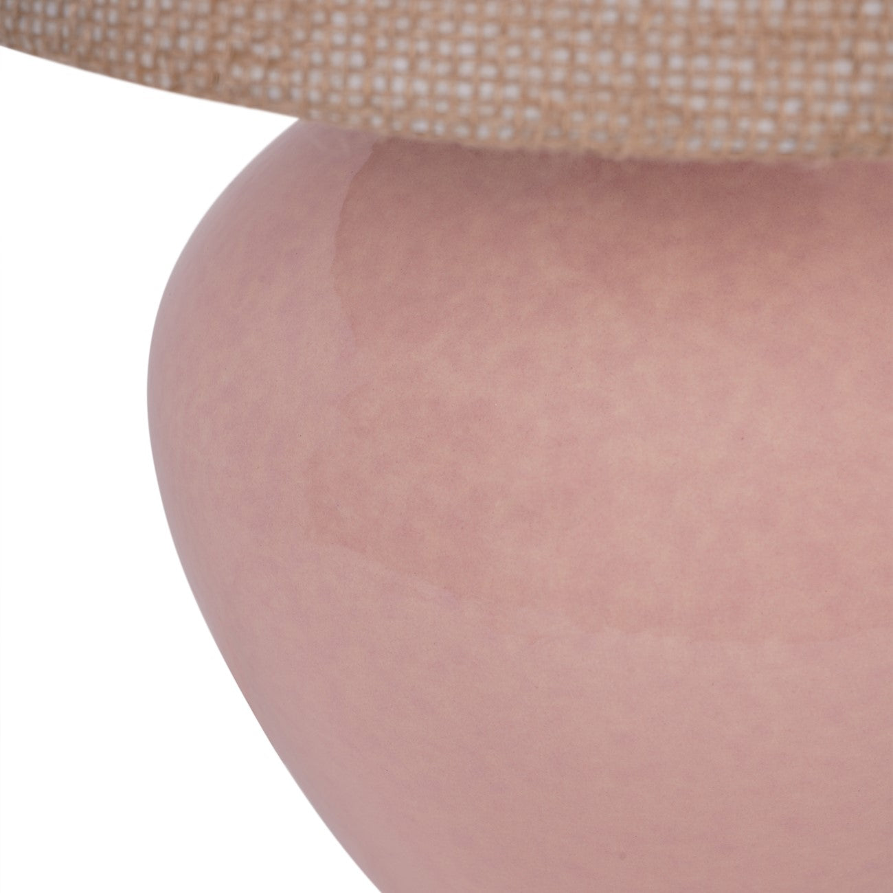 Soft and elegant, the Rowan Small Lamp in Dusky Pink is the perfect accent for modern or rustic spaces. Its glazed ceramic base features a delicate mottled finish in a muted pink tone, complemented by a natural hessian shade for a calming, organic feel. A charming size for bedside tables, dressing tables, or intimate nooks, this lamp brings subtle character and warmth to any room.