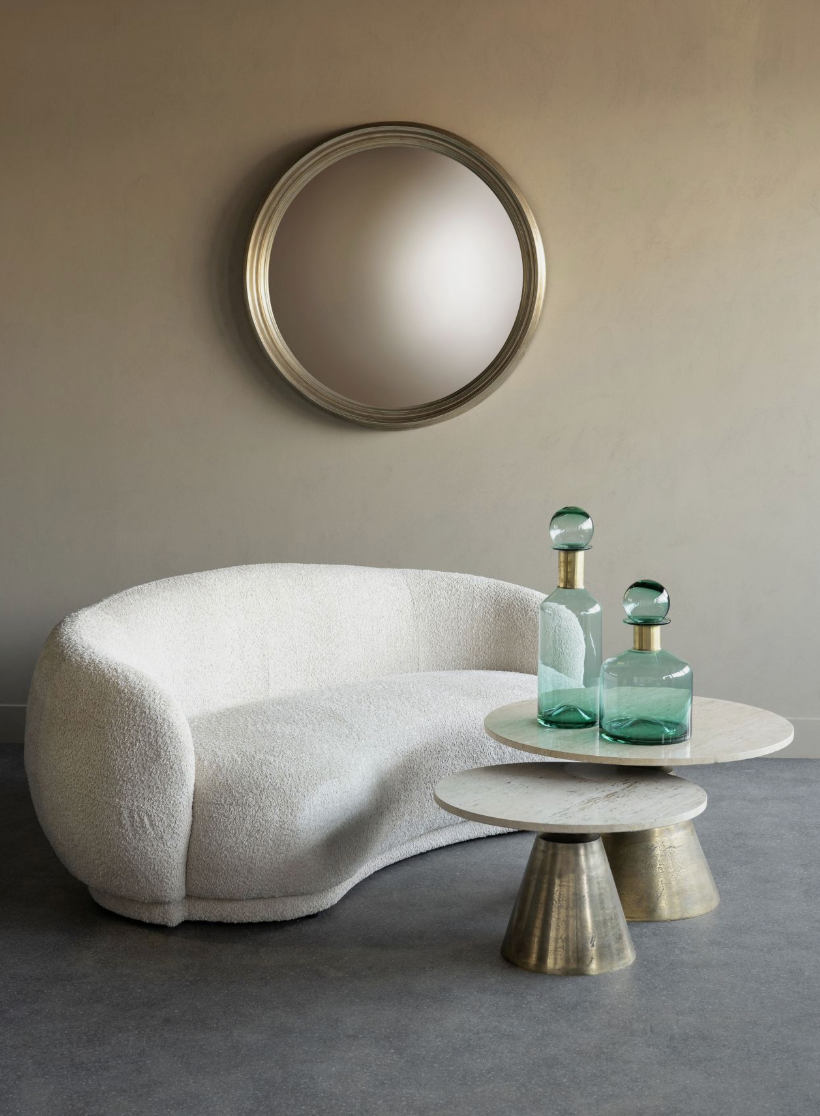 Elevate your space with the timeless elegance of the Seraphina Round Convex Mirror. Featuring a beautifully curved convex centre and a solid wood frame finished in soft antique silver, this statement piece blends classic charm with refined craftsmanship. Its generous 102cm size and sculptural design reflect light beautifully, creating a sense of depth and subtle drama in any room.