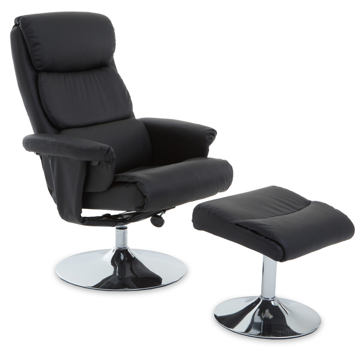 the Luxe Lounger recliner chair and footstool is upholstered in supple PU leather with plush foam padding, this ergonomically designed armchair provides optimal support for your body.