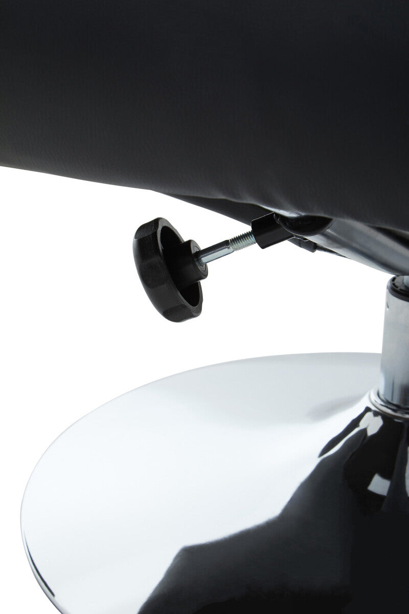 The adjustable backrest and sturdy pedestal base in a sleek chrome finish allow you to customise your relaxation experience, while the matching footstool offers additional comfort for your feet and legs.